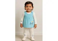 Let her shine in her own way.This blue dress set with floral details blends comfort, warmth, and confidence — perfect for cozy winter playdays.