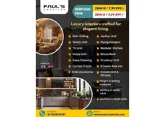 Paul’s Creation stands among the leading residential interior designers in Bangalore, delivering premium GOLD Series 3BHK & 2BHK interiors designed for contemporary families.Get in touch with Paul’s Creation to turn your home into a refined and functional living space.
